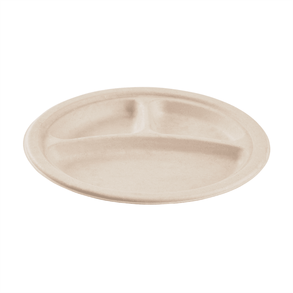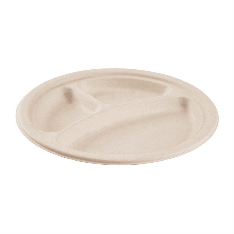 Karat Earth Molded Fiber 3-Compartment Plates are the strategic eco-conscious solution for serving complex meals with ease. Molded fiber is derived from strong, durable plant-based fibers, a high-quality sustainable resource that ensures exceptional serving reliability. Crucially, these plates are guaranteed 100% PFAS-free, eliminating the risk of harmful chemical leaching, thus guaranteeing a safer standard for your table setting. This advanced design is built to maintain the integrity and quality of every dish you serve.