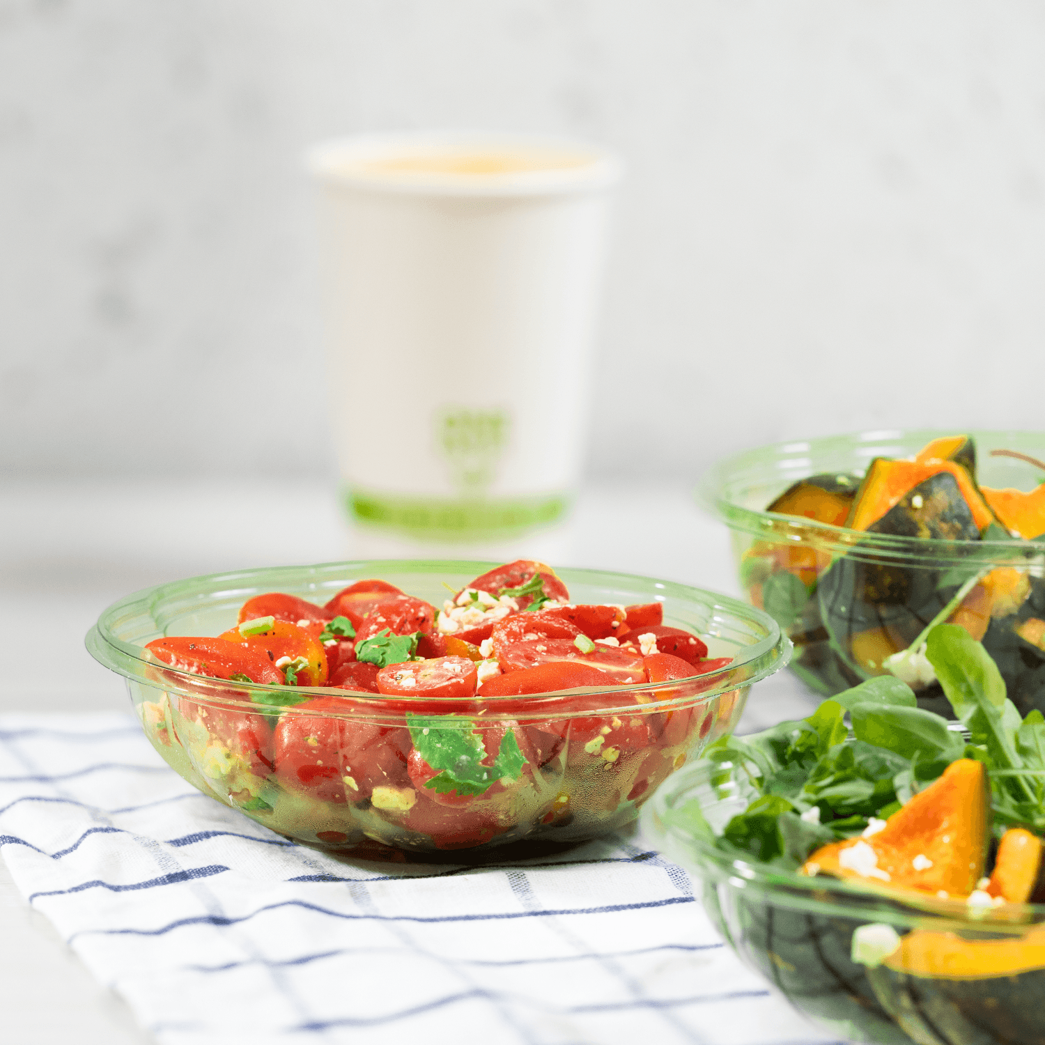Designed with a unique petal shape, each bowl provides an elegant presentation, whether you're hosting a party or simply packing a salad container for lunch. Although lids are sold separately, their compatibility with all bowl sizes ensures a snug fit to retain freshness and prevent spills. Available in various sizes—18, 24, 32, and 48 oz, offering versatility for any occasion. to showcase vibrant salads, savory dishes, or delectable desserts. Karat Earth PLA containers are not only essential for your dining table but are also perfect for on-the-go lifestyles.