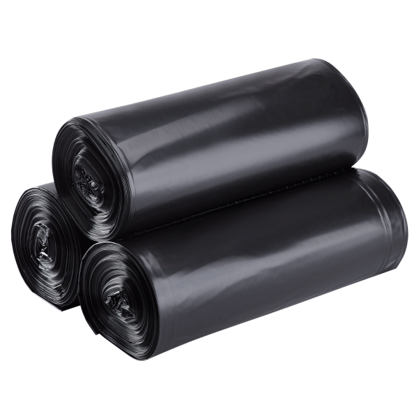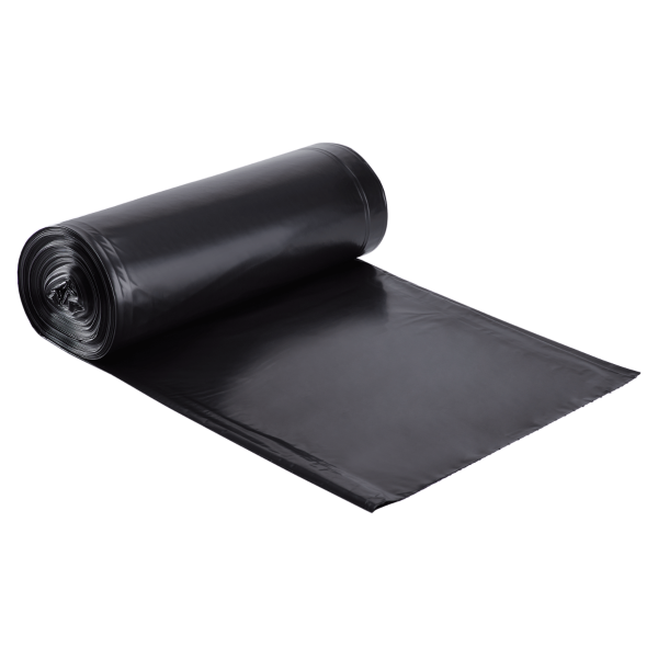 Karat® low-density, 40-50 gallon trash can liners are ideal for heavy trash, debris and is strong enough to hold sharper objects. They are opaque black, so it can help hide the contents within the bag. These 40” x 46” liners can be used in a variety of areas like kitchens, restaurants, hotels, high-activity restrooms and many more. Manage your business’s waste with ease with our low-density trash can liners! Each package provides 100 trash can liners and has 4 rolls with 25 pieces in each.