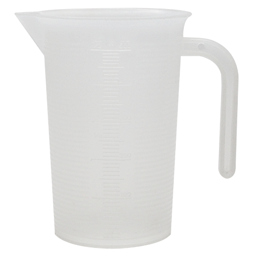 These measuring cups come with a handle that allows for easy handing and has both liters and mL listed on the side of the cup up to 1/2 L and 500 mL.