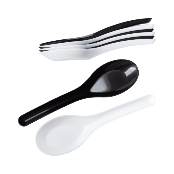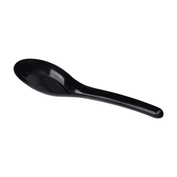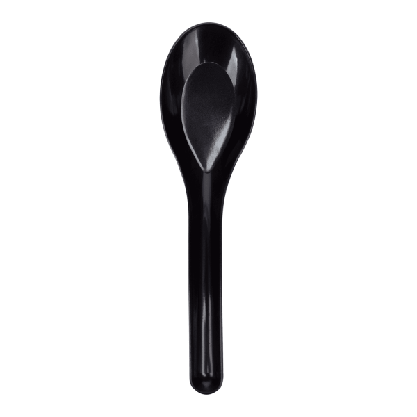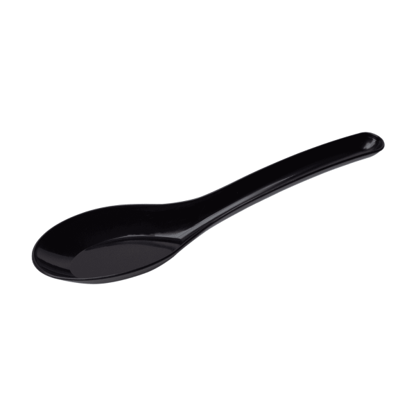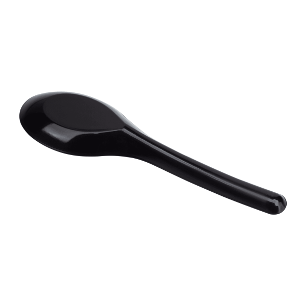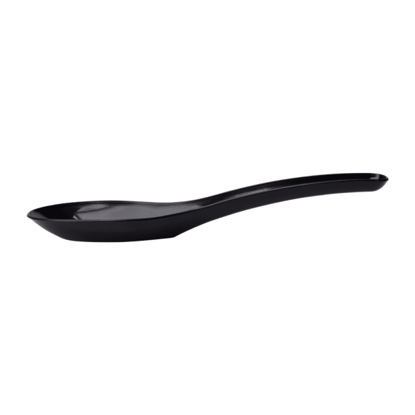 Enjoy broth-based soups or bite-sized hors d'oeuvres with the Karat Asian Soup Spoon in elegant black.