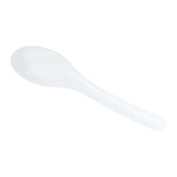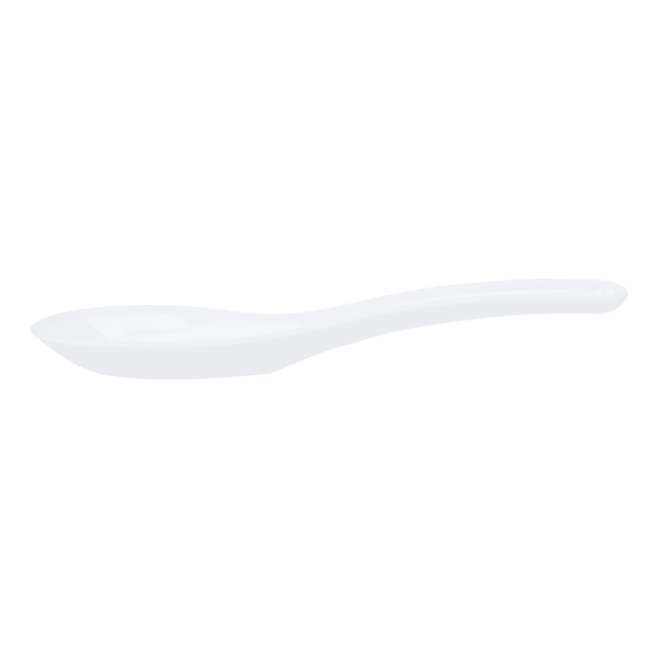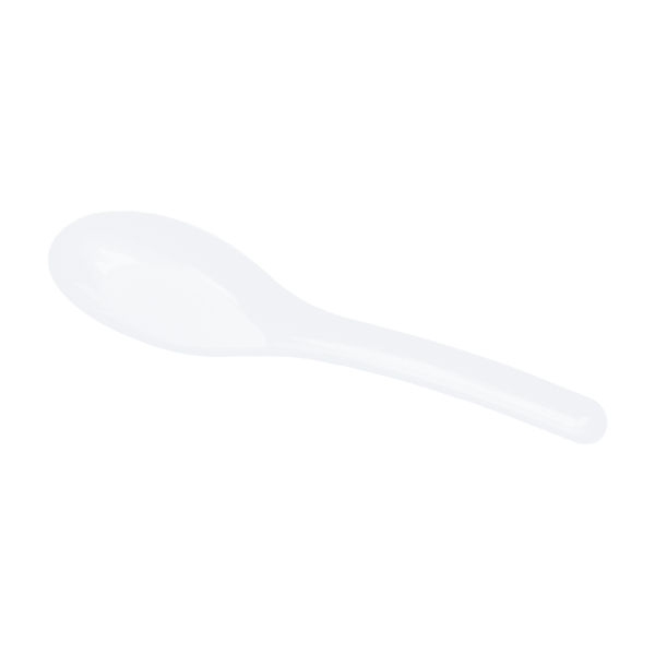 Use the Karat Asian Soup Spoon as an elegant disposable solution for soup take out. These plastic soup spoons have a flat wide base that can hold plenty of broth, noodles, or wontons. Food service operators offering ramen, pho, wonton soup or any other broth-based soup will want this spoon in their restaurant supply. The polypropylene material and wide handle make this a durable break-resistant spoon capable of holding heavier soups.
