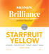 Get ready to revamp your energy with Monin Brilliance Natural Energy! This drink uses Coffeeberry® Energy, green coffee extract, L-theanine, vitamin B12, and guarana to make a tasty and clean iced energy drink. Made with natural colors and real starfruit flavor, Starfruit Yellow is both zesty and refreshing, just like its vibrant yellow hue. Every 1-oz. serving (2 pumps) of Starfruit Yellow has 80mg of natural caffeine. Enjoy the tangy taste of starfruit complemented by hints of pineapple and tropical fruits. It's a bold and balanced flavor experience!