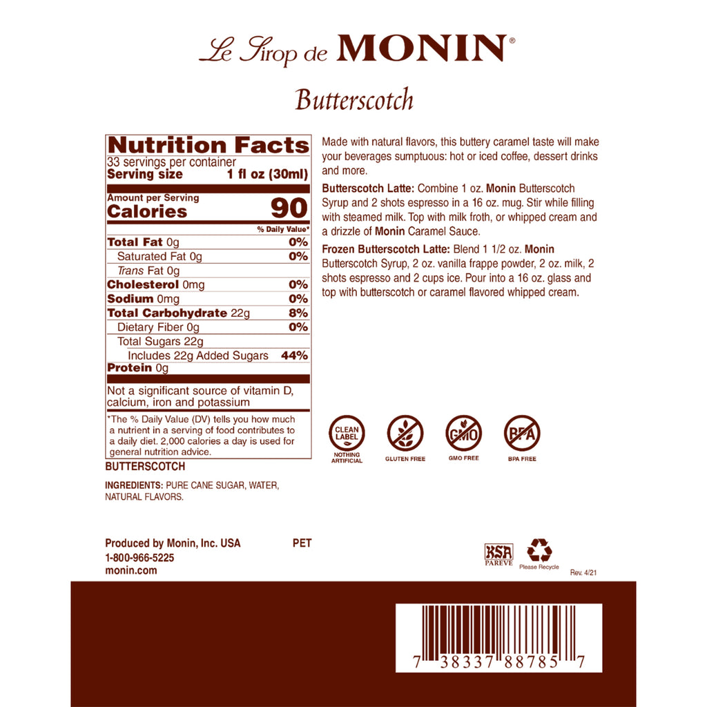 Monin Butterscotch Syrup is specially crafted to bring the classic confectionery flavor to life in both hot and cold coffee and dessert drinks. The versatility of this syrup allows you to unleash your creativity and enjoy the authentic butterscotch flavor in countless ways.