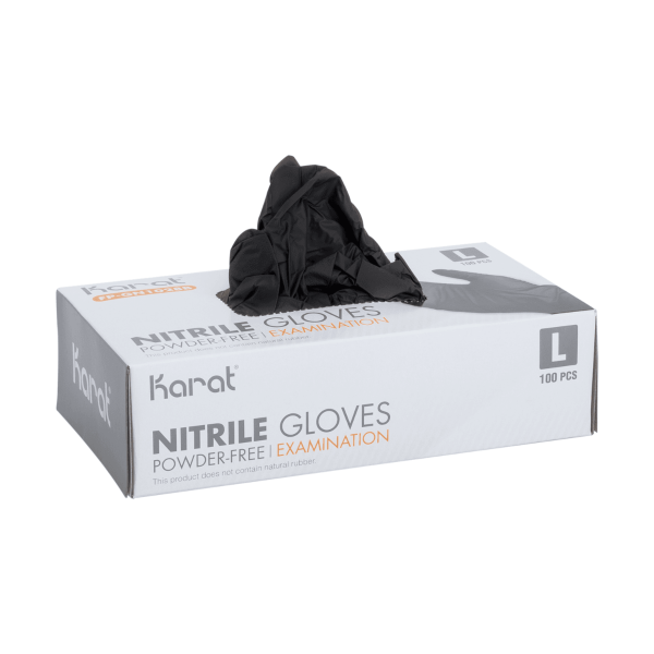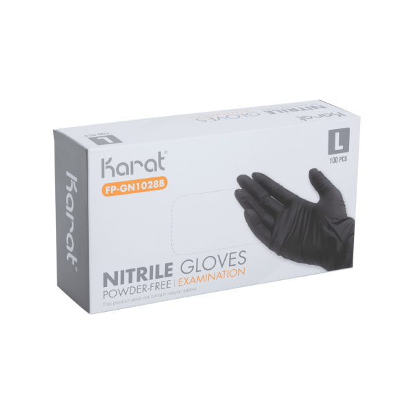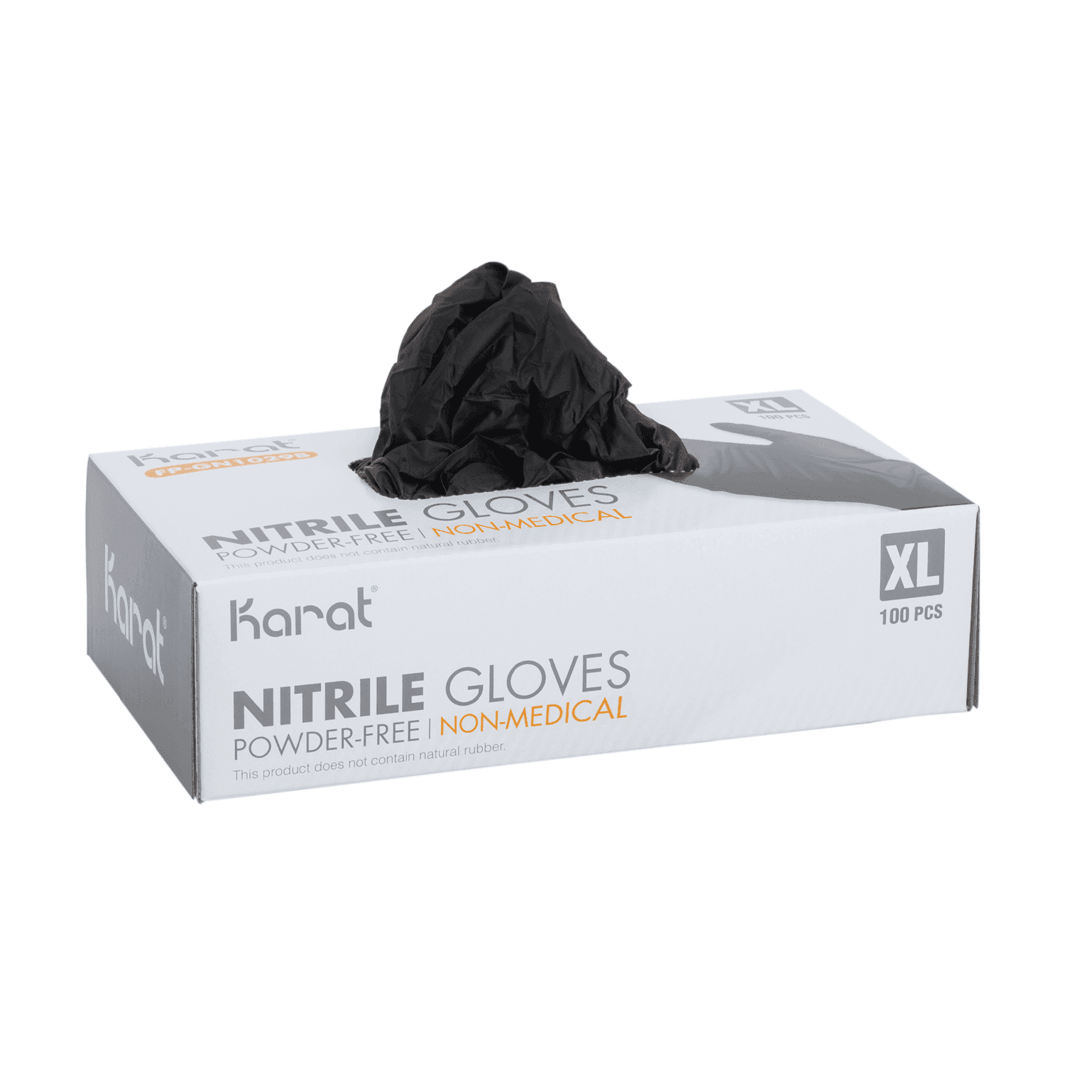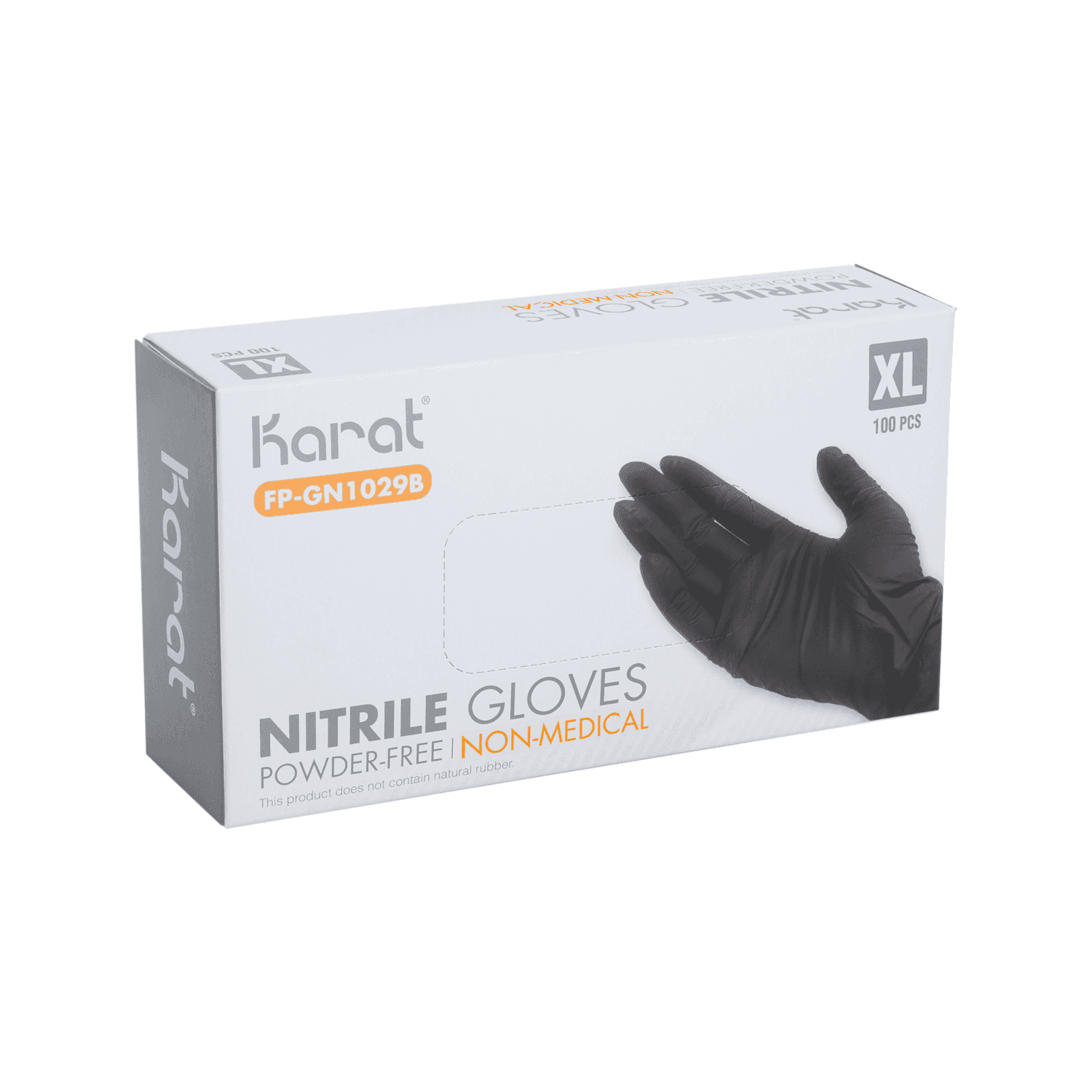 Karat Nitrile Gloves contain no latex and are powder-free. Having the highest level of touch sensitivity due to the glove's ability to mold to your hand for a good fit, our nitrile gloves are good to wear for an extended amount of time. Of the four material types of gloves we offer, our nitrile gloves are the most puncture resistant and are colored black to help identify if the glove has been punctured. These gloves are intended for food preparation purposes.