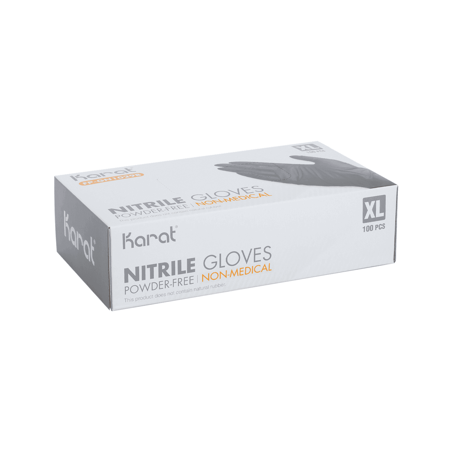 Karat Nitrile Gloves contain no latex and are powder-free. Having the highest level of touch sensitivity due to the glove's ability to mold to your hand for a good fit, our nitrile gloves are good to wear for an extended amount of time. Of the four material types of gloves we offer, our nitrile gloves are the most puncture resistant and are colored black to help identify if the glove has been punctured. These gloves are intended for food preparation purposes.