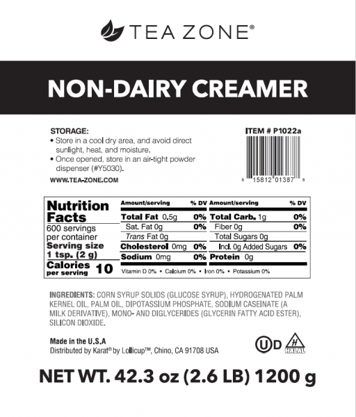 Tea Zone’s Non-Dairy Creamer will add a smooth and creamy texture taste to coffee, tea, and smoothies. Since it is a non-dairy powder powdered formula, it is ideal to be stored in areas where there is a lack of refrigeration. Also, the powder has a higher shelf life than the milk and reduces the risk of spoilage.