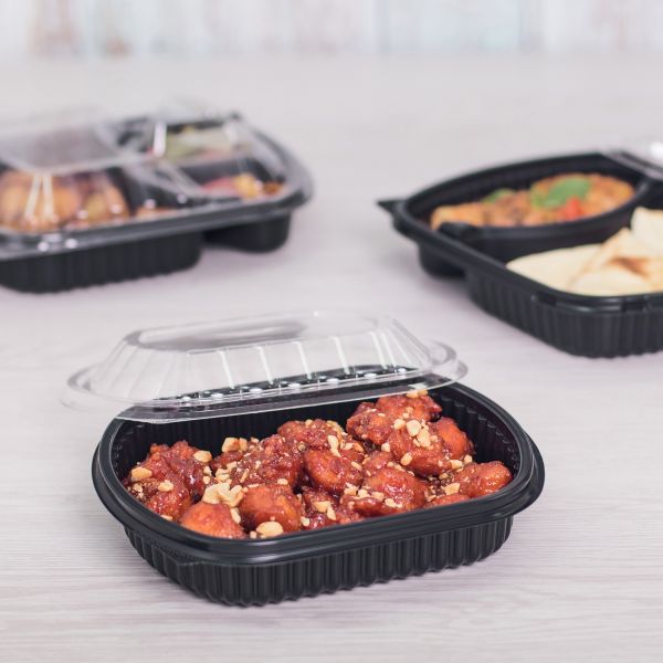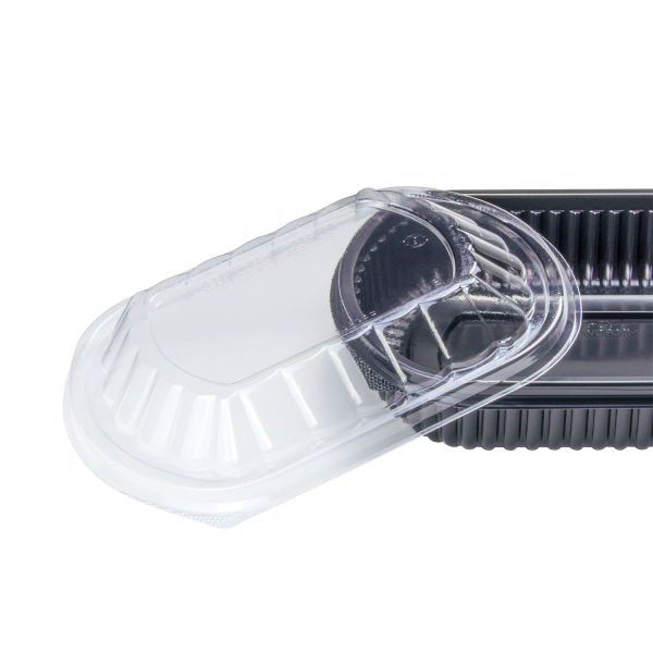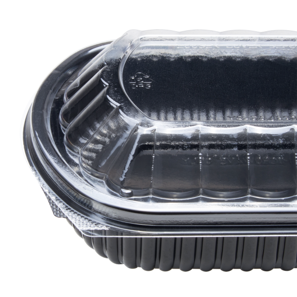 Karat® OPS lid matches perfectly with 24 oz PP Microwaveable Black Take Out Box! These Karat OPS lids are designed to securely fit on the Karat 24 oz PP Microwaveable Take out Box. Each OPS lid has a temperature tolerance of 0-90°C (32-194°F) and can’t be microwaved.