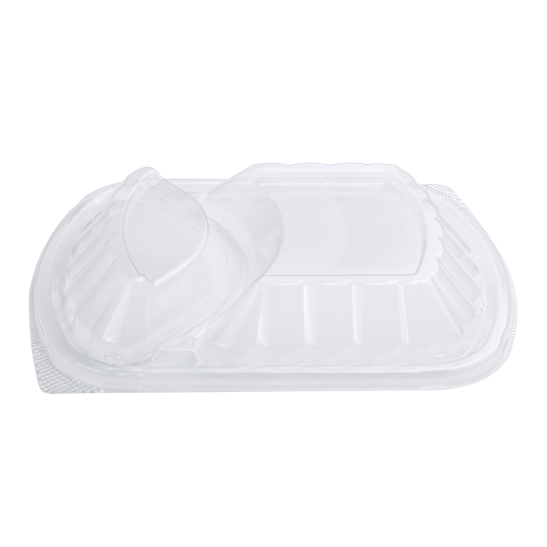 [300 ct] OPS Lid for 36 oz Microwaveable Take-Out Box | 2-Compartment | Clear