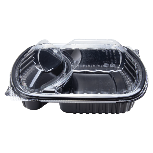 These Karat OPS lid are designed to perfectly fit the 36 oz PP Microwaveable Black Take Out Box, 2-Compartment containers. The Karat OPS Lid is for the Karat 36 oz 2-Compartment PP Microwavable Take out Containers. Each OPS lid has a temperature tolerance of 0-90°C (32-194°F) and can’t be microwaved.