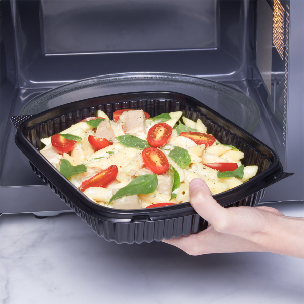 Karat® OPS lid matches perfectly with 36 oz PP Microwaveable Black Take Out Box! These Karat OPS lids were made for Karat 36 oz Single Compartment PP Microwaveable Containers. Each OPS lid has a temperature tolerance of 0-90°C (32-194°F) and can’t be microwaved.