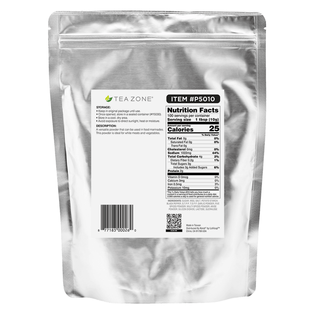 Tea Zone Original Meat Marinating Powder makes creating bold delicious white meat meals easy! This blend of spices can be used for the best chicken marinade recipe and saves space in your pantry of ingredients. This marinating powder is perfect for the very popular Taiwanese popcorn chicken or it is good on other white meats such as pork.