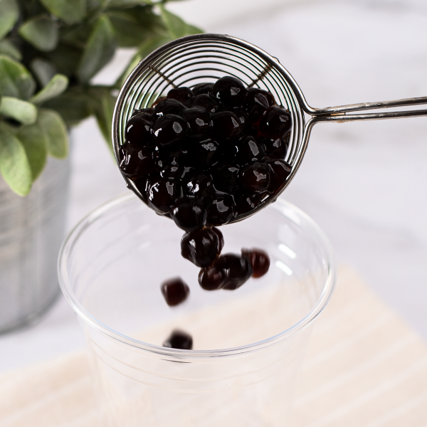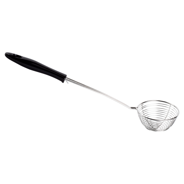 This Tapioca Scoop is a metal wire scoop with a black ABS handle cover. Used it to scoop and drain one serving of tapioca (boba) for bubble tea drinks.