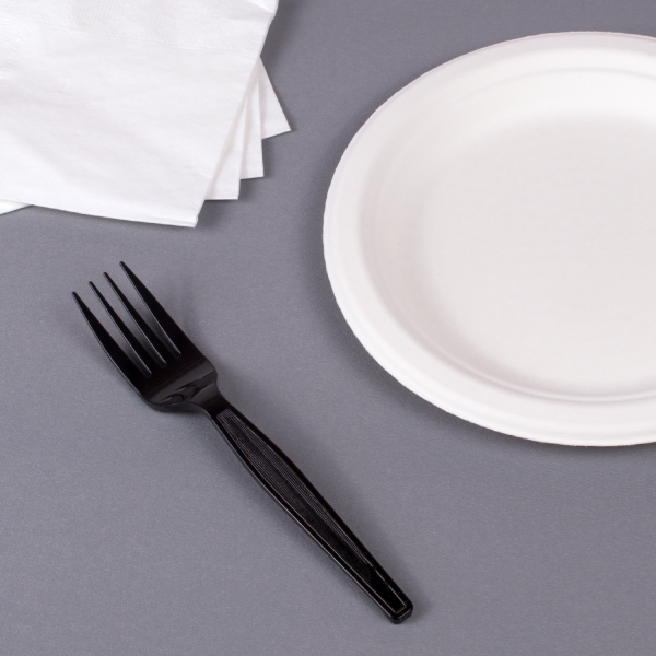 [1,000 ct] PS Plastic Medium-Heavy Weight Forks Bulk Box, Black