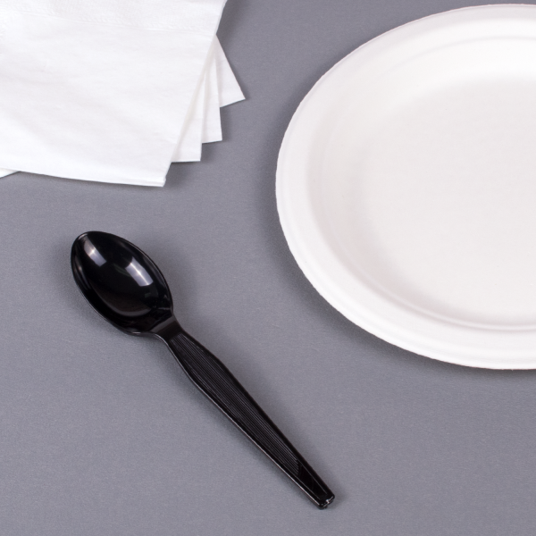 [1,000 ct] PS Plastic Medium-Heavy Weight Tea Spoons Bulk Box, Black