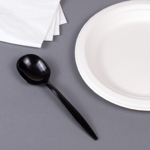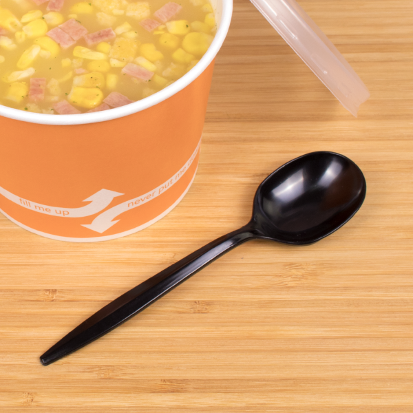 [1,000 ct] PS Plastic Medium Weight Soup Spoons Bulk Box, Black