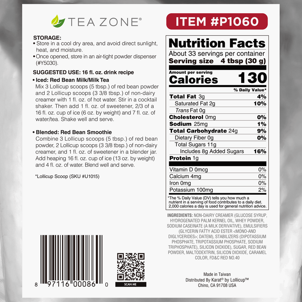 Tea Zone Red Bean Powder is made with natural flavors to bring you the best product possible. Red Bean Powder has a sweet taste with creamy and earthy notes for all your beverage or dessert needs. It’s perfect for smoothies, milk teas, flavored milk, and various blended drinks.