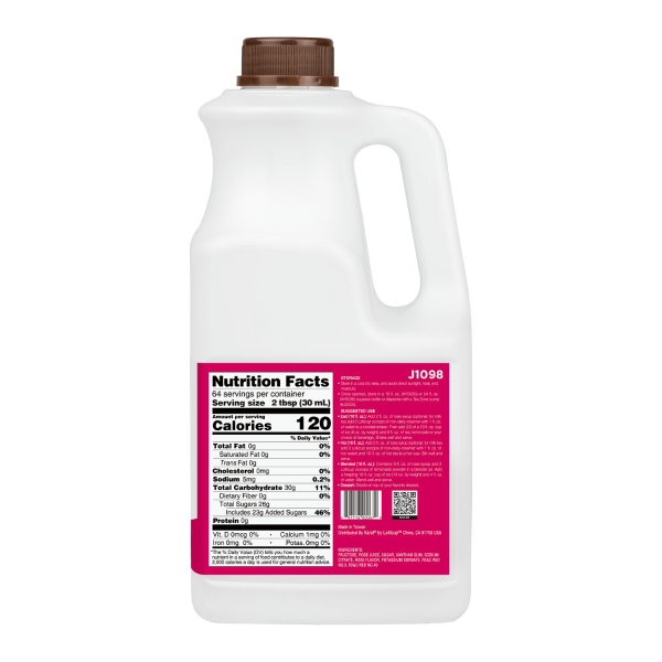 Ingredients: Fructose, Rose Juice, Sugar, Xanthan Gum, Sodium Citrate, Rose Flavor, Potassium Sorbate, FD&C Red NO.3, FD&C Red NO. 45.