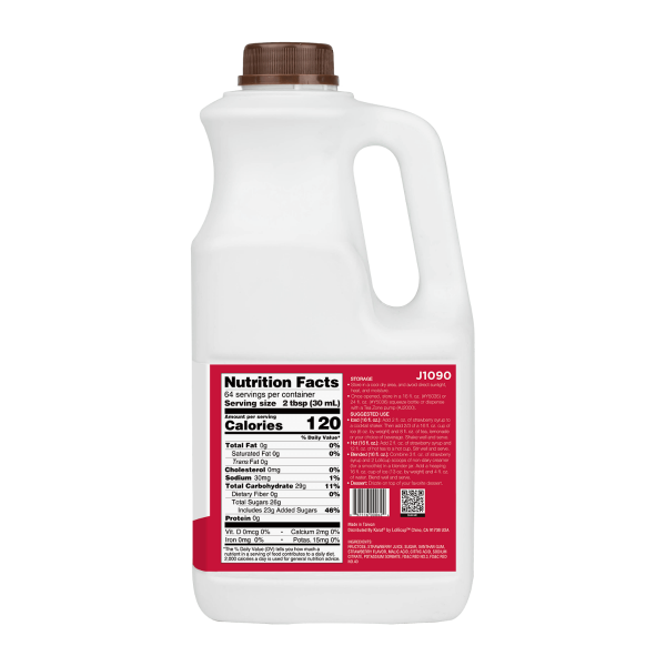 Ingredients: Fructose, Strawberry Syrup, Sugar, Xanthan Gum, Strawberry Flavor, Malic Acid, Potassium Sorbate, Sodium Citrate, Citric Acid