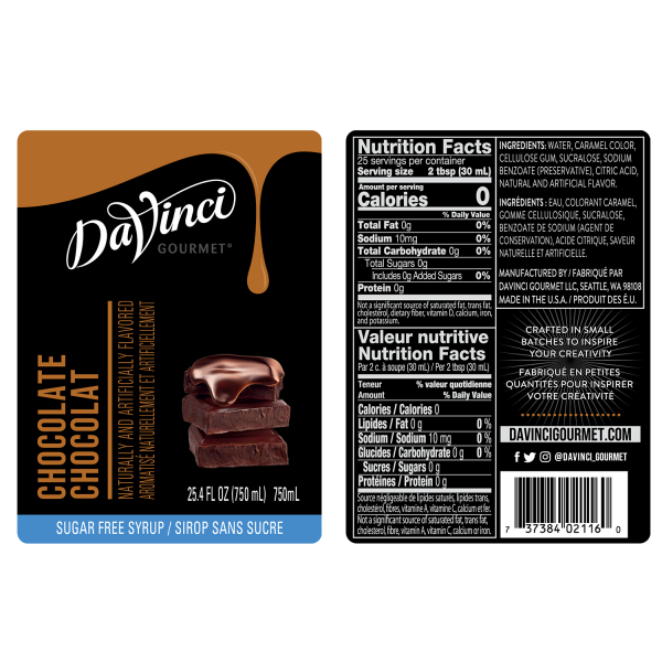Sugar Free Chocolate Syrup from DaVinci Gourmet has the famously irresistible taste of rich chocolate. Sweetened with SPLENDA® Brand Sweetener.