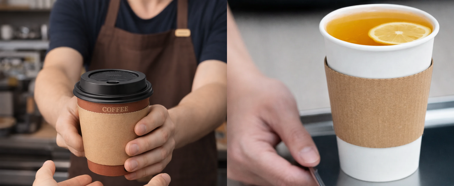 Karat Coffee Cup Sleeves are a great solution for handing both hot and cold beverages. These pre-assembled cup sleeves come with our generic fleur print and make the perfect accessory for your coffee cups.