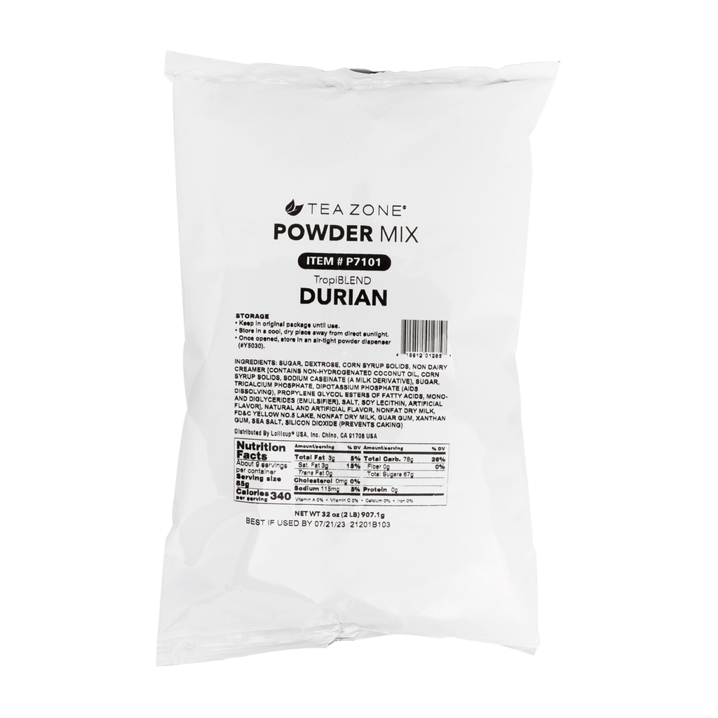 Enjoy a sweet taste of durian fruit. Tea Zone TropiBLEND Durian Powder is a powder mix great for making smoothies, milk teas, flavored milk, and various blended drinks. This unique and delicious flavor adds a special twist to all your favorite drinks. Enjoy the tropics with every sip!