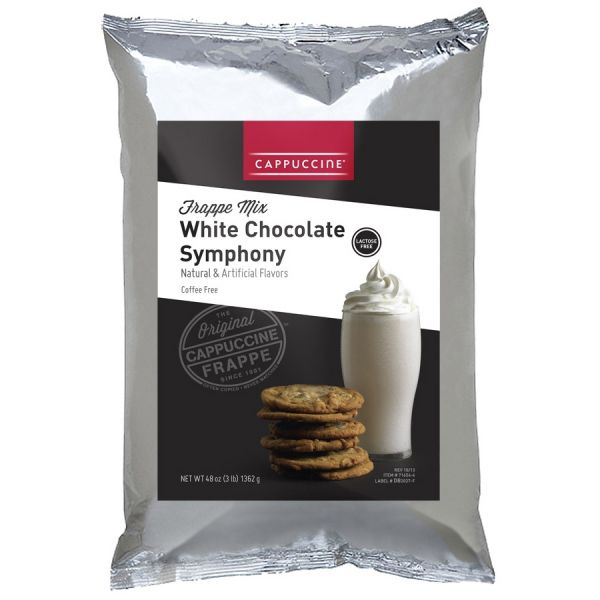 The Original Cappuccine Frappe is the perfect solution for any busy specialty beverage environment. Extremely simple to make, our famous powdered frappe mix can be used to prepare frozen, over ice or hot beverages and is unmatched for flexibility, efficiency and taste. A smooth, gourmet white chocolate powder, Cappuccine White Chocolate Symphony Base is the perfect coffee-free mix that can be used on its own or as a smoothie base.