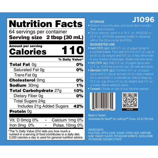 Fructose, Apple Syrup, Sugar, Citric Acid, Xanthan Gum, Yogurt Flavor, Potassium Sorbate, Acesulfame Potassium, Sodium Citrate